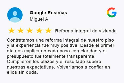 La opinión de nuestros clientes es el mejor reflejo de nuestro trabajo. Cada reforma que realizamos está orientada a cumplir lo acordado, cuidar los detalles y ofrecer un resultado que realmente marque la diferencia. La satisfacción y la tranquilidad de quienes ya han confiado en nosotros son nuestra mayor garantía.